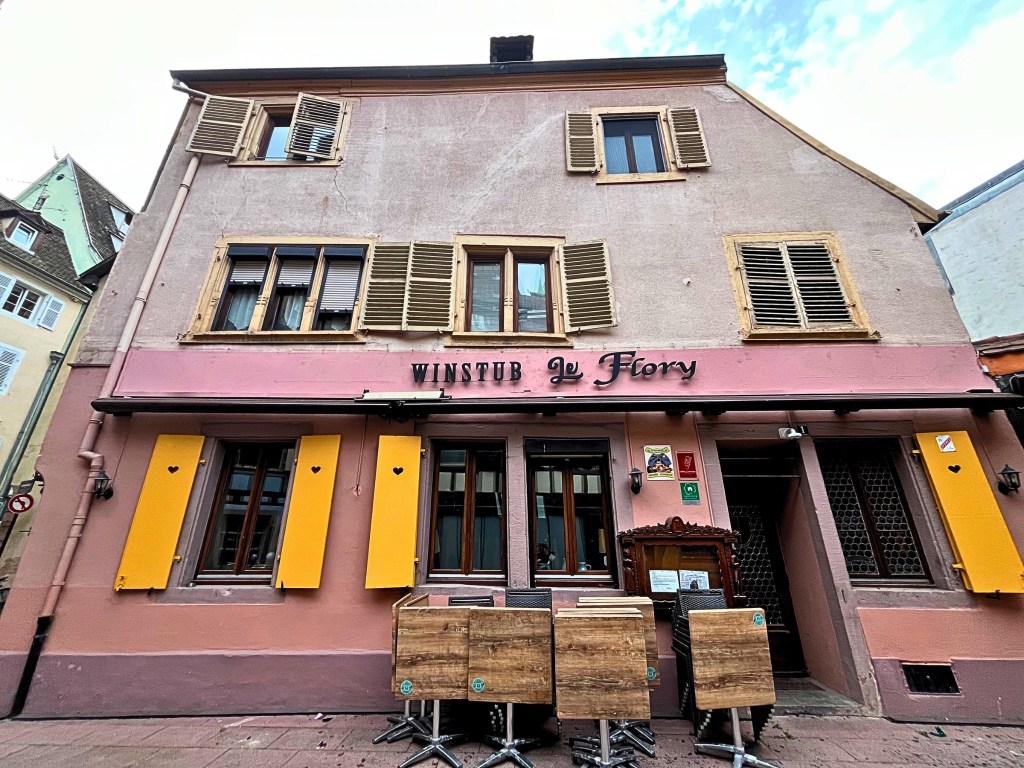 Here, life has unfolded since the 9th century, around the year 823. The medieval architecture tells the story—half-timbered houses leaning gently over narrow cobbled lanes, wooden shutters painted in soft blues and greens, and facades in warm hues of rose, peach, and ochre. Beneath the burgundy branches of a tree rooted near a curved doorway, time feels suspended. At a cozy restaurant tucked into one of these corners, I finally learned how to pronounce *Gewurztraminer*—the name of a beloved Alsatian wine—just as the locals do.